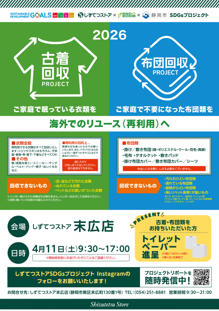 今回の取り組みは、2026年度第1回目のしずてつストア回収プロジェクトとなります。