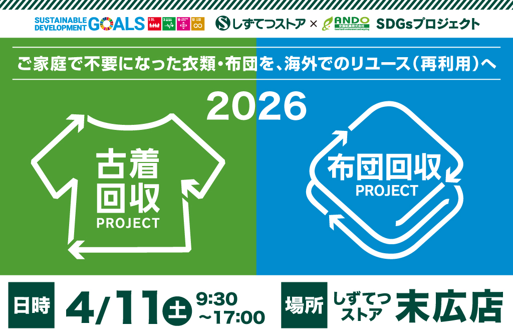 4月11日(土)末広店にて古着回収・布団回収を実施します!