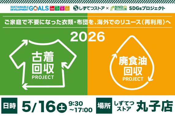 5月16日(土)丸子店にて古着回収・廃食油回収を実施します!